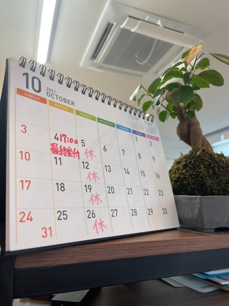 10月の診療日程ですが10月4日の受付が17:00までとなっております。
